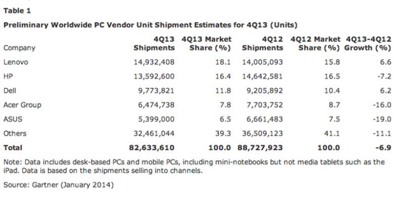The data described in the initial report Gartner reported by The Next Web. Estimates of this research institute noted that, overall, some 315.9 million PCs pengkapalan units in 2013 to 10 percent lower than in 2012.